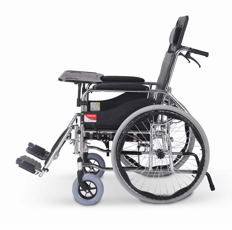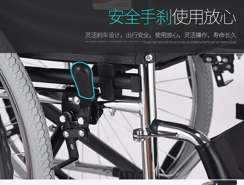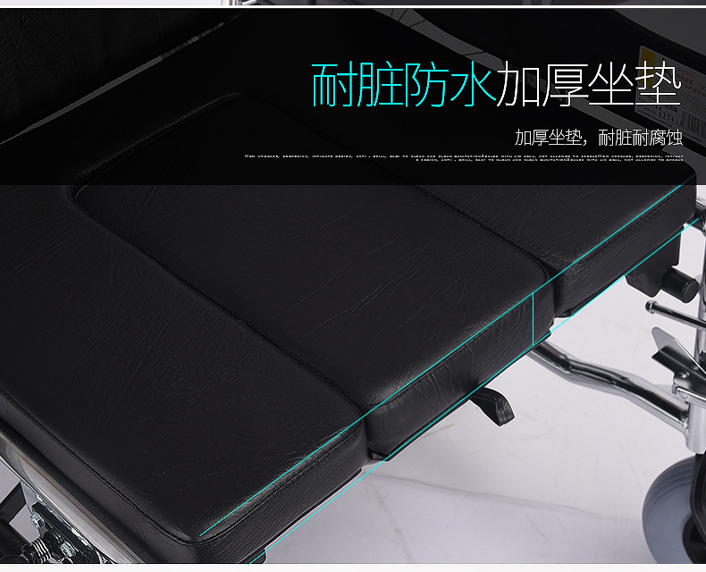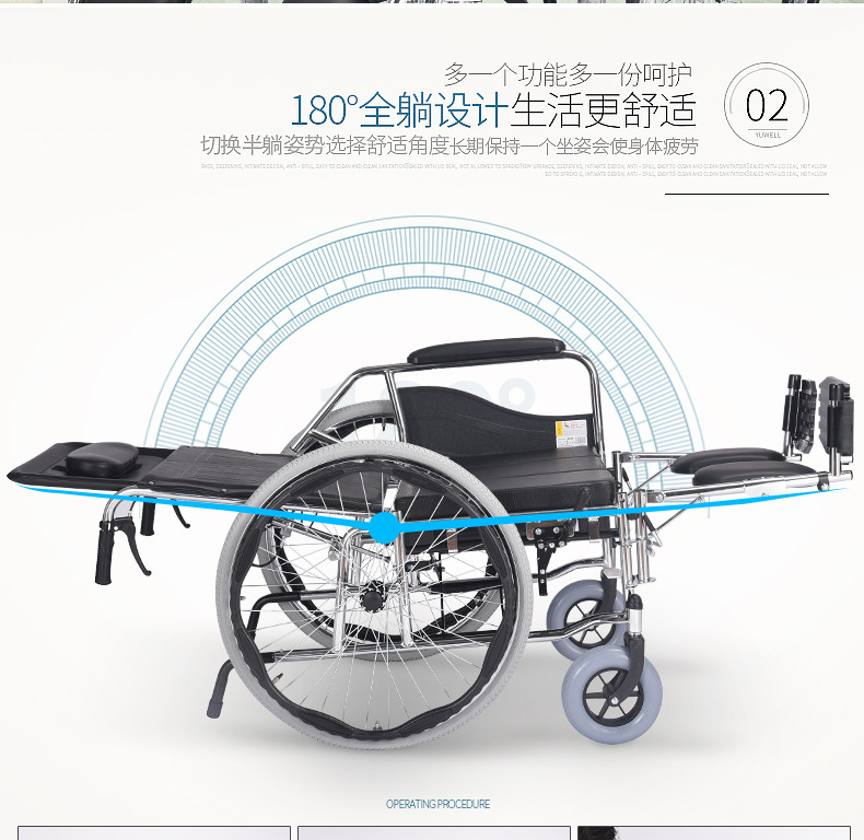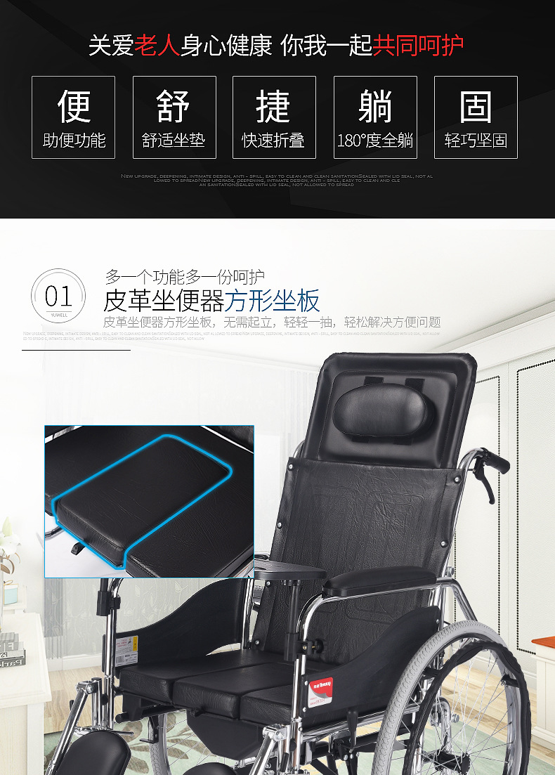 鱼跃轮椅车H008B 折叠带坐便全躺老年残疾人代步轻便扶手可拆轮椅