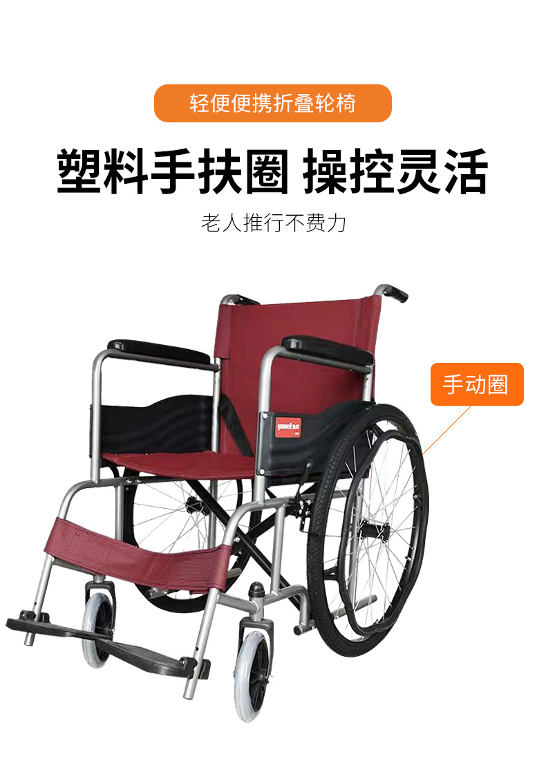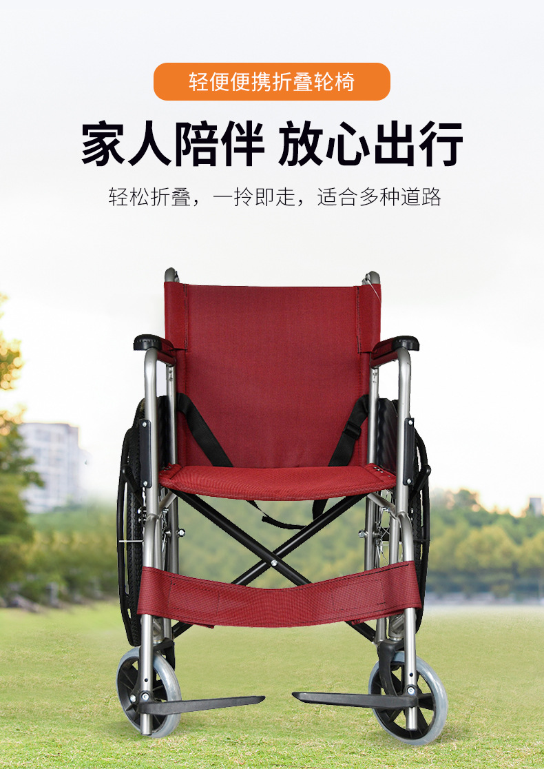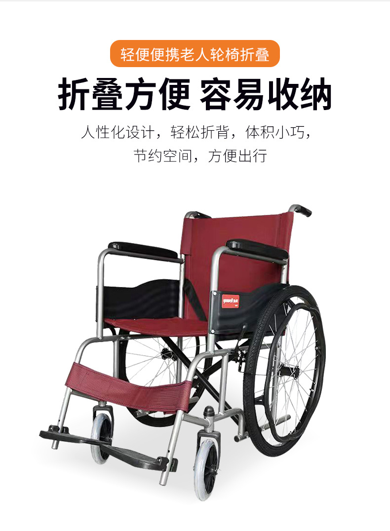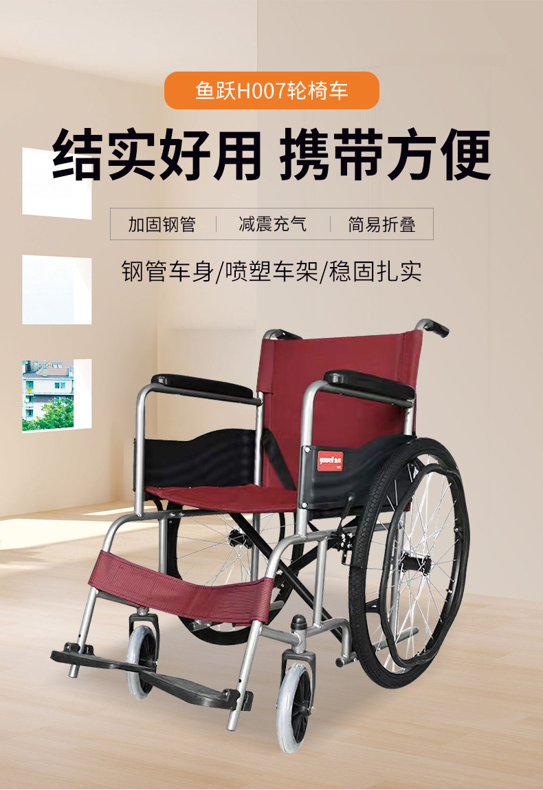 鱼跃H007轮椅车老人残疾便携式折叠轮椅旅游携带方面轻便折叠轮椅