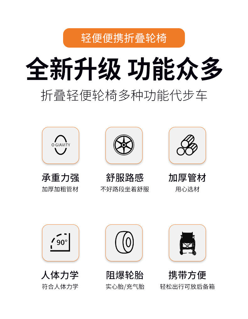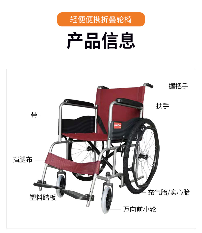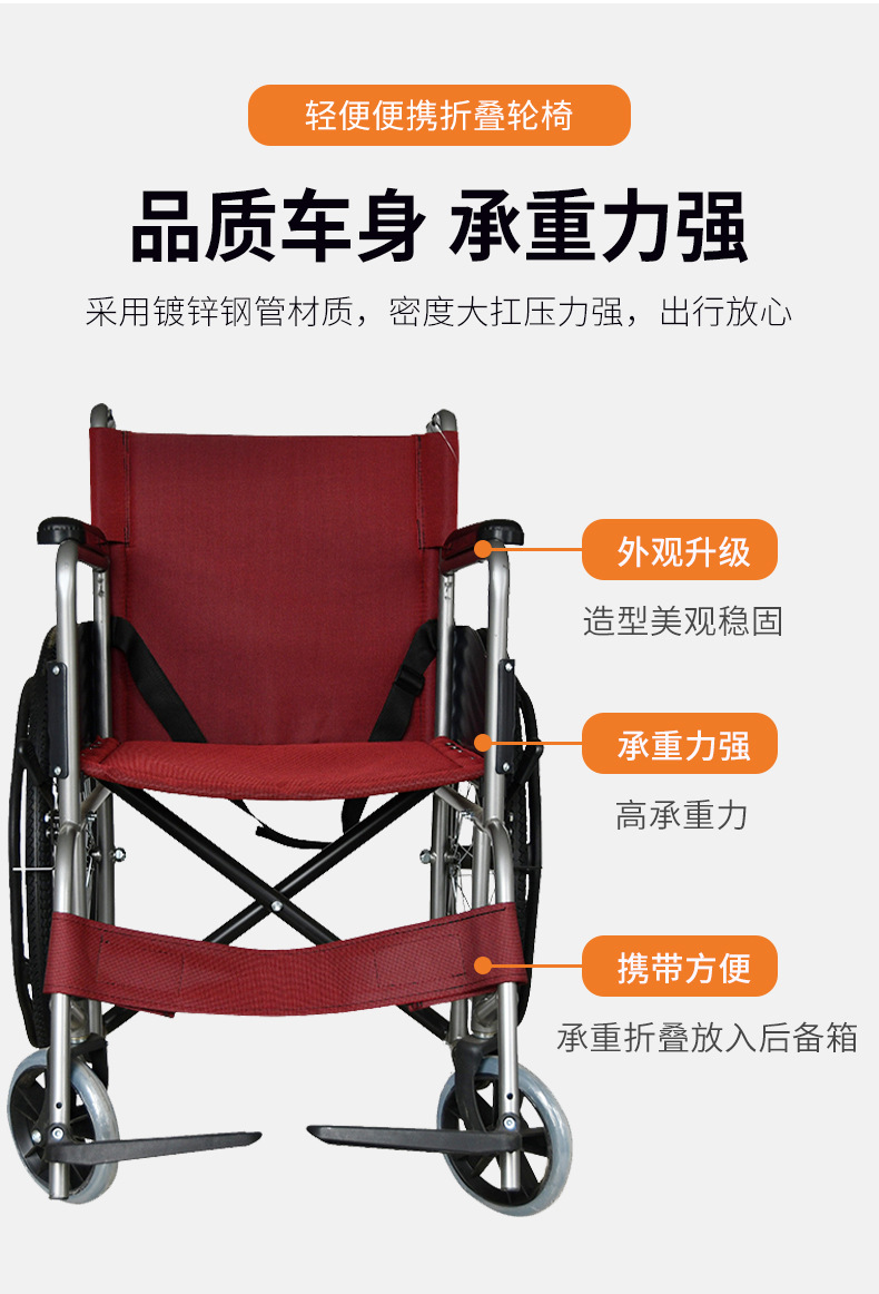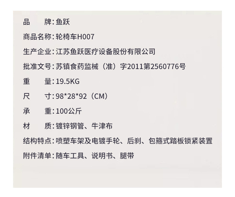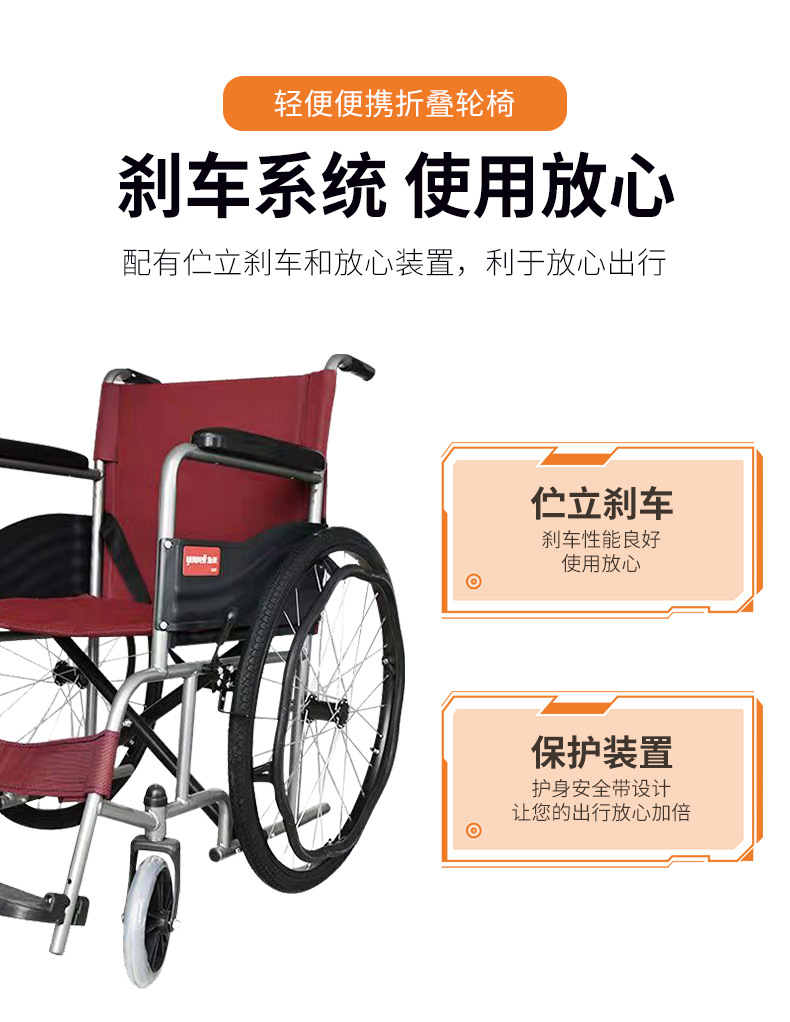 鱼跃H007轮椅车老人残疾便携式折叠轮椅旅游携带方面轻便折叠轮椅