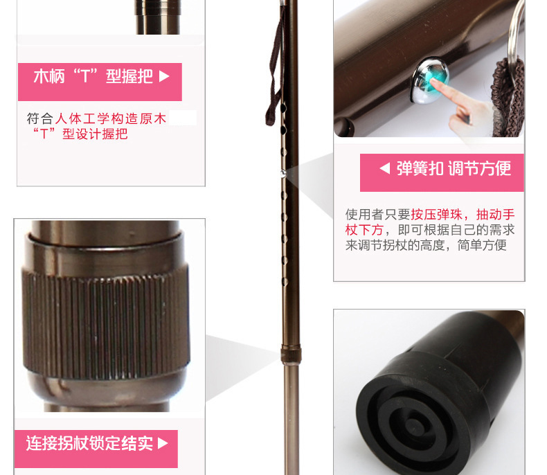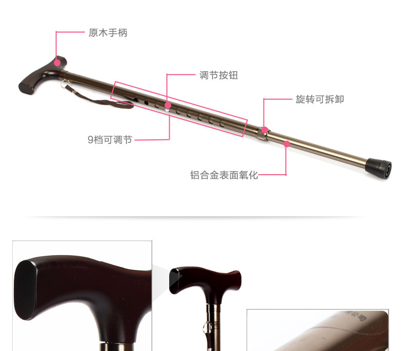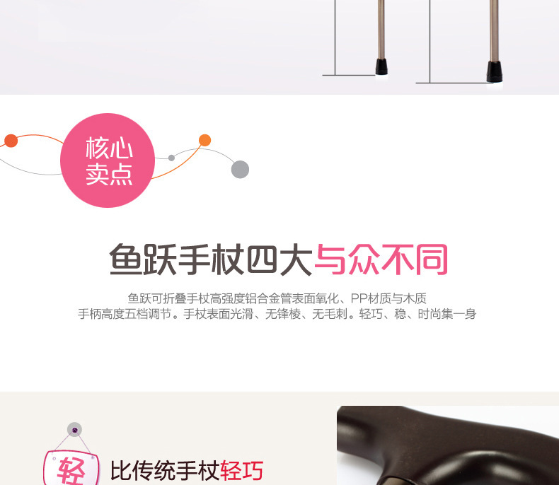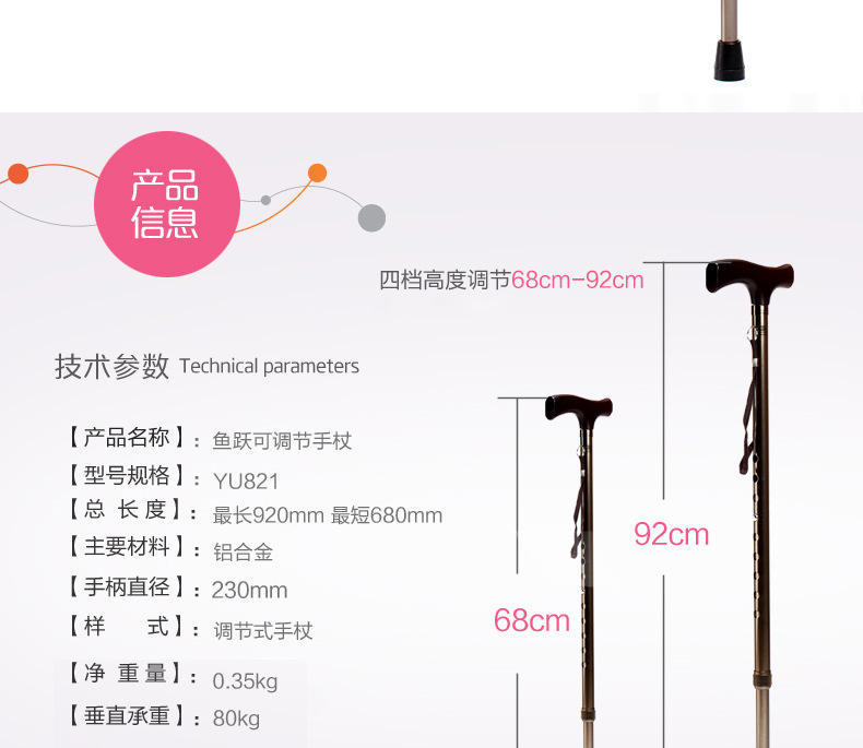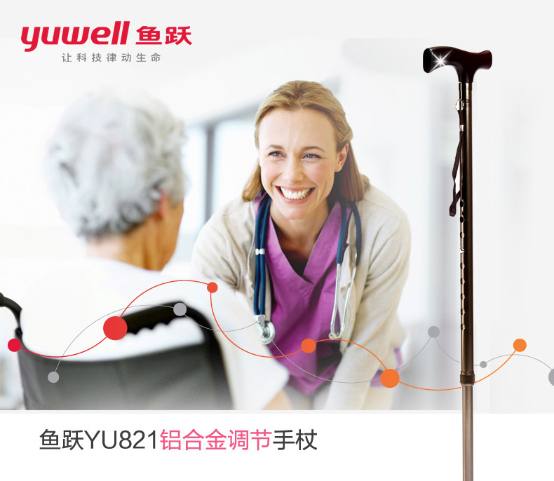 鱼跃YU821手杖辅助老年人盲人手杖铝合金可调节伸缩四角拐棍拐杖