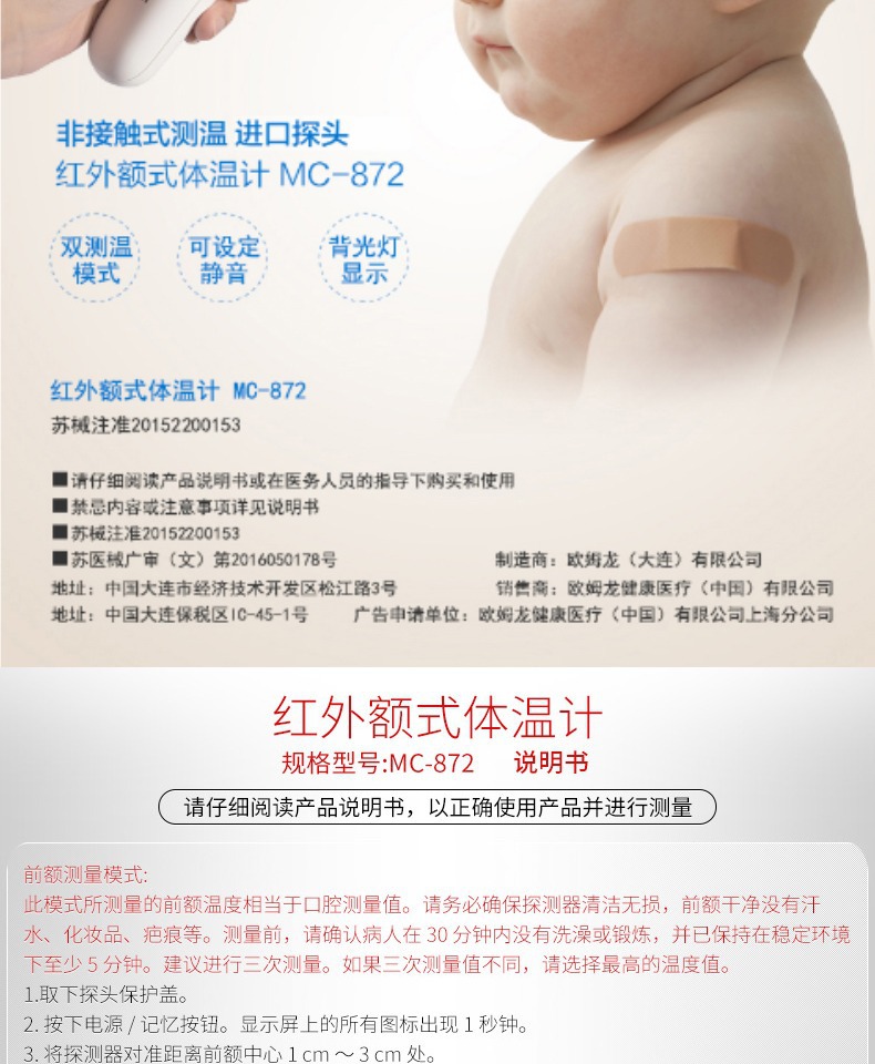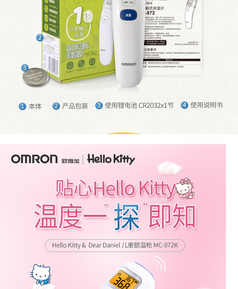欧姆龙额温枪电子体温计MC-872家用红外线额头测温仪温度计测发烧