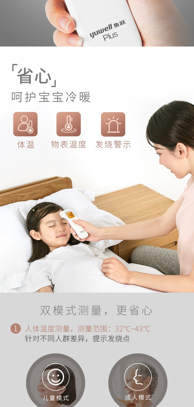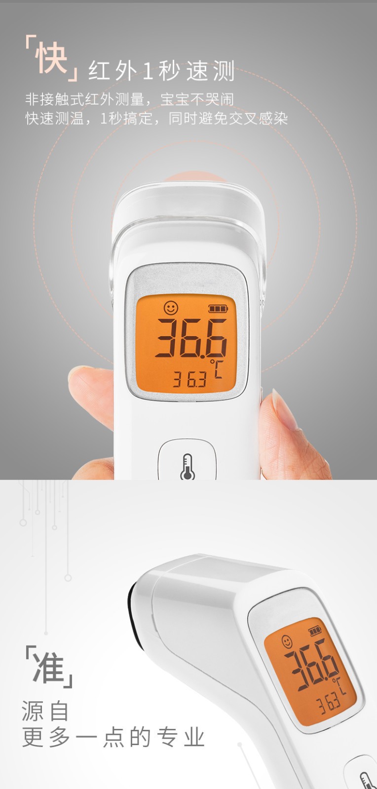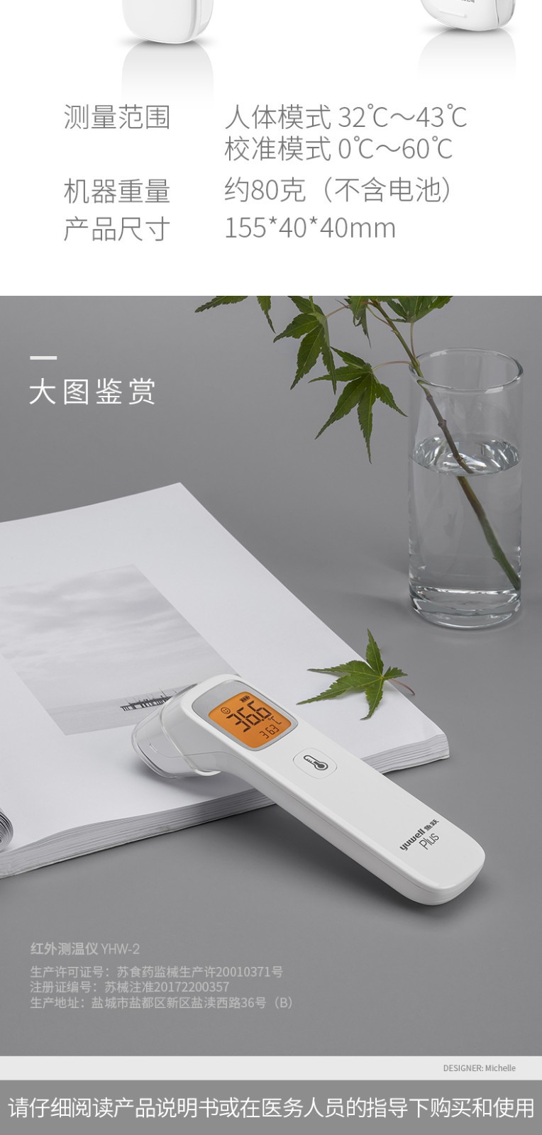 鱼跃YHW-2红外线电子温度体温测量额温枪可代发YHW-2院线同款