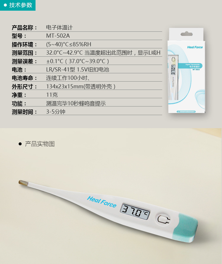 力康医用电子体温计MT-502A儿童成人口腔腋下居家检测体温表测温